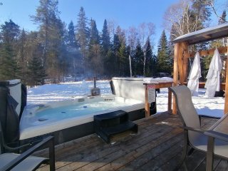À LOUER -- LA MACAZA (près de Mont-Tremblant) DUPLEX CITQ #302-729 -- Location à la nuit, à la semaine, au mois ou à la saison. Un véritable paradis caché au coeur des Laurentides, à la jonction du ruisseau Froid et de la rivière Macaza. Cet endroit enchanteur offre tout le confort d'une maison moderne, dans un décor naturel paisible et inspirant. Un lieu idéal pour deux familles ou un groupe d'amis. L'auberge, aménagée en duplex entièrement meublé, permet un partage simple et harmonieux : Deux logements séparés par des portes isolées (insonorisées) Deux cuisines, deux salons, deux salles à manger.